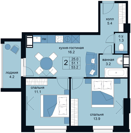 В апартаменте никто не жил, состояние отличное. Классическая планировка: кухня 16,2 кв. метра и комнаты по 13,9 кв.м. и 11,1 кв.м, раздельный санузел. Застекленная лоджия 4,2 кв.м. Апартамент полностью укомплектован и готов для быстрого заселения. В стоимость апартамента входит кухонный гарнитур со встроенной техникой: стиральная и посудомоечная машина, вытяжка, холодильник, варочная панель и духовой шкаф; обстановка спальни помимо мебели включает телевизор, постельное белье и т.д.; полностью оборудованный санузел.